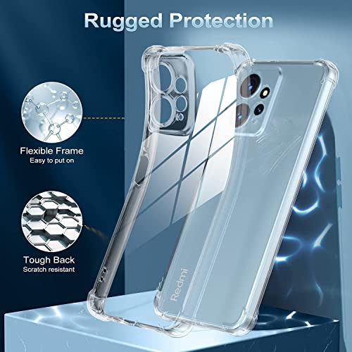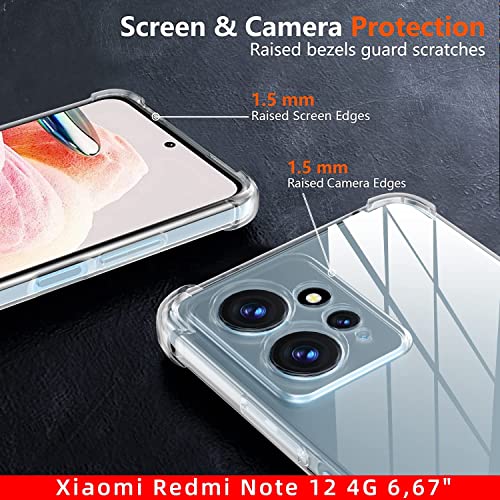 Dl3 Mobilak - جراب حماية جوريلا مضاد للصدمات مصنوع من بولي يوريثين حراري وسيليكون ومزود بزوايا ممتصة للصدمات وواقي للكاميرا لموبايل ريدمي نوت 12 4G من دلع موبايلك - شفاف