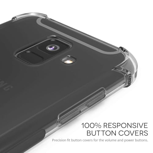 • متوافقة مع: هذا الجراب الشفاف مصمم فقط لموبايل سامسونج جالاكسي A6 (2018). يساعدك على الوصول إلى جميع المنافذ والأزرار، ولا يؤثر على الكاميرا أو خاصية اللمس. مضاد للخدش على الظهر، يحمي موبايلك من الصدمات والأضرار والغبار.