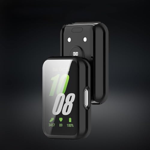 Dl3 Mobilak - دلـع موبايلك جراب متوافق مع سامسونج جالاكسي فيت 3 شامل شاشة حماية مدمجة للساعة غطاء ناعم من البولي يوريثين الحراري المقاوم للصدمات واقي رفيع ممتص (اسود)