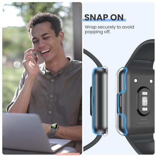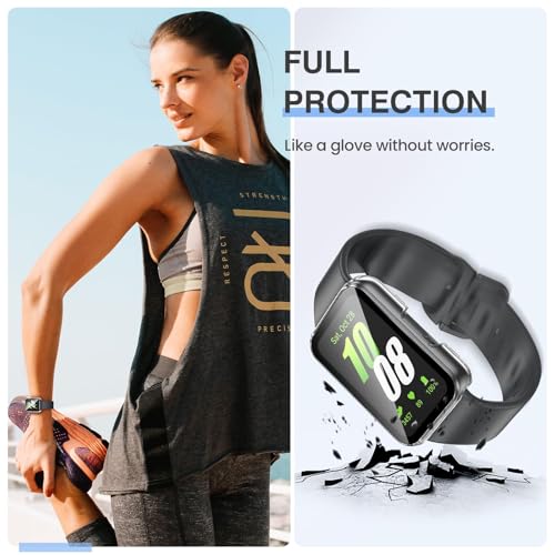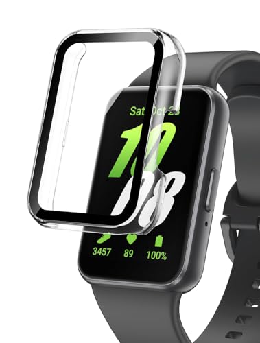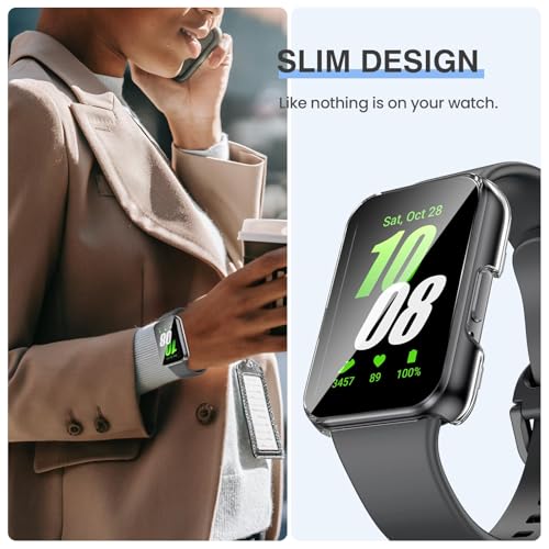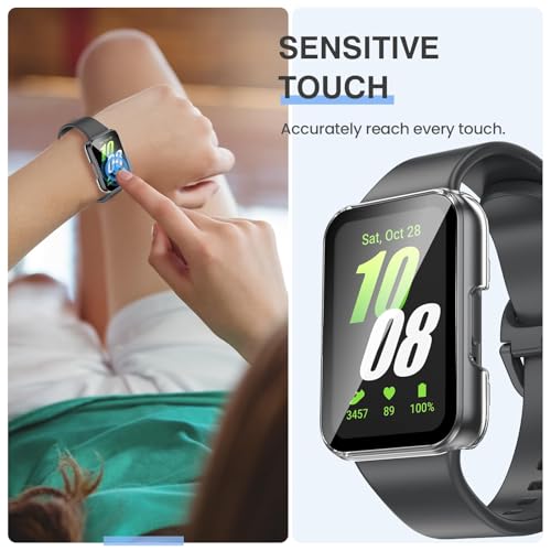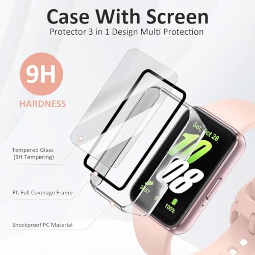 - ✅【حماية شاملة بزاوية 360 درجة】- شاشة حماية من الزجاج المقوى بدرجة صلابة 9H تحمي شاشة ساعتك، بالإضافة إلى حافظة عالية الجودة تغطي الحواف الأمامية والمنحنية بالكامل لساعة سامسونج جالاكسي فيت 3، ما يوفر حماية كاملة لساعتك الذكية من الخدوش أو السقوط أو الصدمات المفاجئة.