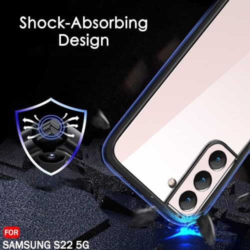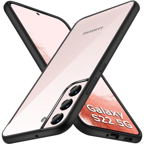 Dl3 Mobilak - جراب حماية شفاف نحيف مصنوع من البولي كربونات الصلب + السيليكون المرن ومضاد للصدمات [لا يتحول للاصفرار] دلـع موبايلك لموبايل سامسونج جالاكسي S22 لون اسود يوريثين الحراري