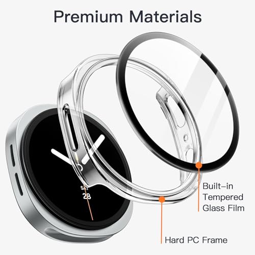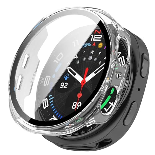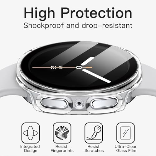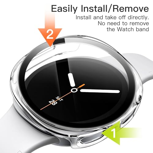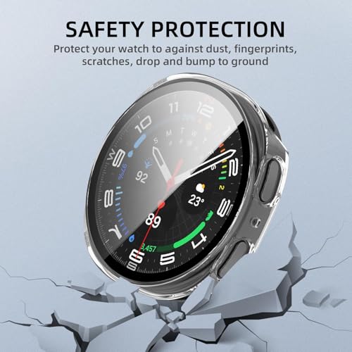 Dl3 Mobilak - جراب واقي صلب نحيف بتغطية كاملة متوافق مع ساعة سامسونج جالاكسي 8 مقاس 44 ملم، واقي شاشة من الزجاج المقوى مدمج لساعة جالاكسي 8 مقاس 44 ملم (شفاف) من دلـع موبايلك