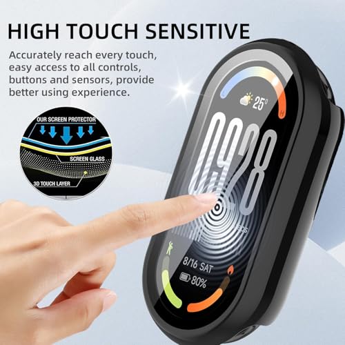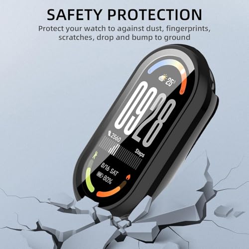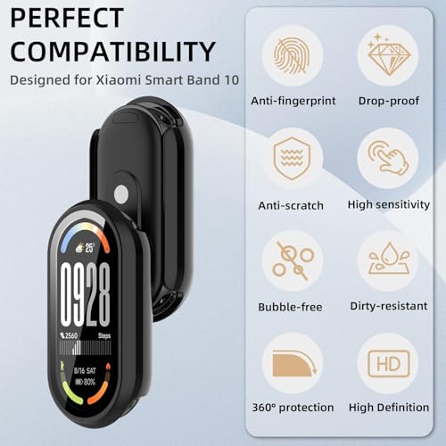 - ✅【حماية شاملة 360°】 - شاشة حماية من الزجاج المقوى بصلابة 9H تحمي شاشة ساعتك، جنبًا إلى جنب مع جراب حماية عالي الجودة، تغطي الواجهة الكاملة والحواف المنحنية لسوار شاومي الذكي 10، مما يوفر حماية كاملة لساعتك الذكية ضد الخدوش أو السقوط أو الصدمات العرضية.