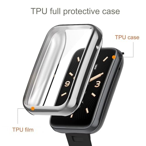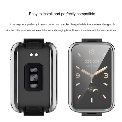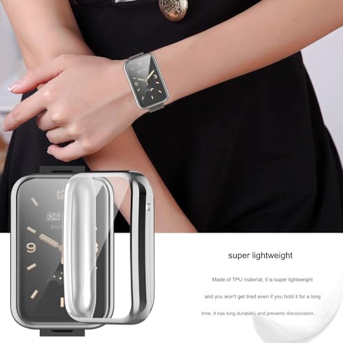 Dl3 Mobilak - دلـع موبايلك جراب متوافق مع شاومي مي باند 7 برو شامل شاشة حماية مدمجة للساعة غطاء ناعم من البولي يوريثين الحراري المقاوم للصدمات واقي رفيع ممتص فضي .