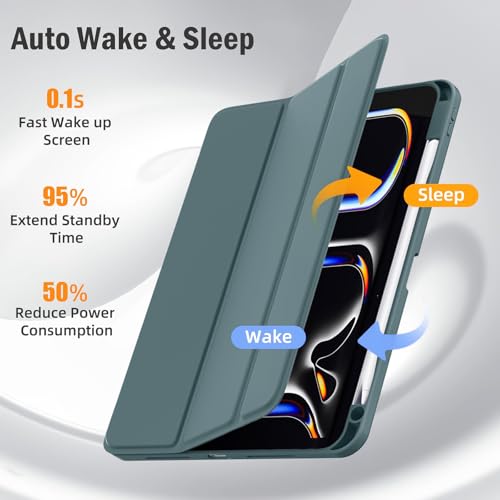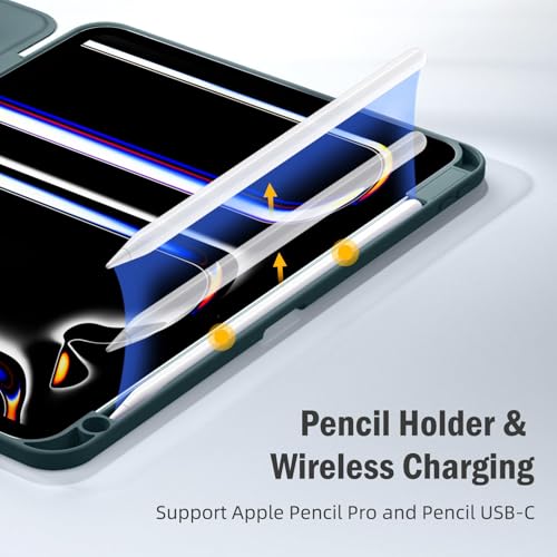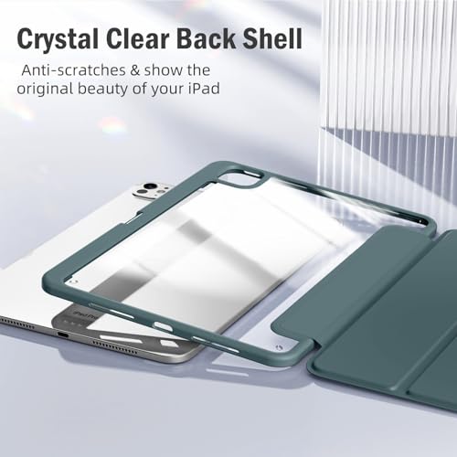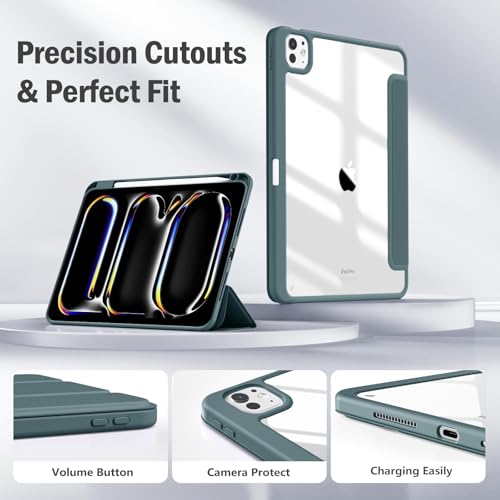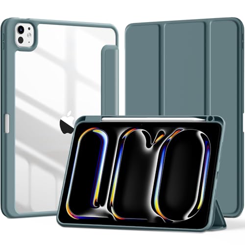 Dl3 Mobilak - جراب تابلت خلفي شفاف ورفيع ومضاد للصدمات بحامل للقلم ومسند مع خاصية الاستيقاظ/السكون تلقائيًا لجهاز اي باد برو 13 بوصة (إصدار 2024) من دلع موبايلك، أخضر