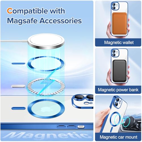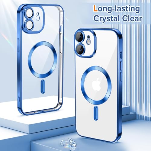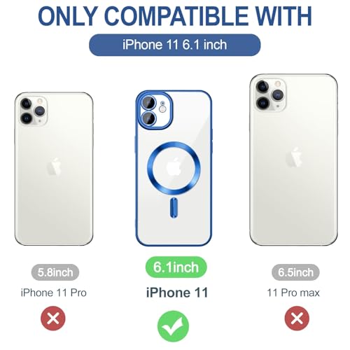 Dl3 Mobilak - دلـع موبايلك جراب حماية مغناطيسي شفاف لموبايل ايفون 11 (6.1 بوصة) ماج سيف مع واقي لعدسة الكاميرا، رفيع مضاد للخدش (ازرق)، سيليكون