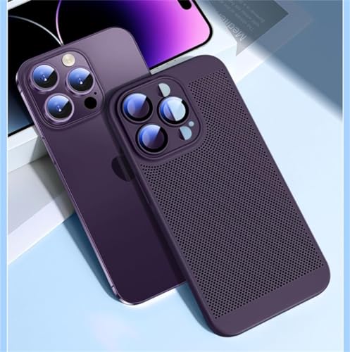 Dl3 Mobilak - جراب لموبايل آيفون 14 برو ماكس 6.7 بوصة من دلـع موبايلك، جراب تبديد الحرارة مع واقي عدسة كاميرا مدمج، رفيع ومزود بمسامات للتهوية ومضاد للبصمات، جراب خلفي صلب مقاوم للصدمات من البولي كربونات - أرجواني
