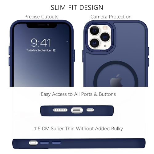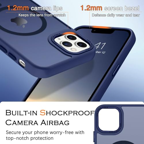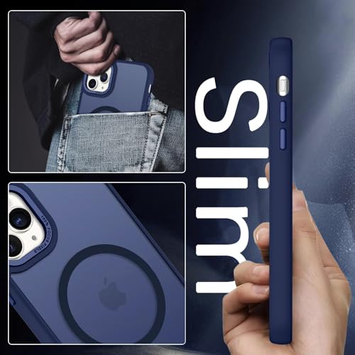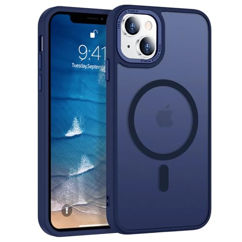 Dl3 Mobilak - جراب حماية شفاف مغناطيسي مطفي متوافق مع ماج سيف بتصميم رفيع وخفيف مضاد للصدمات يوفر حماية صلبة للموبايل مناسب لآيفون 15 مقاس 6.1 بوصة للرجال والنساء والبنات من دلع موبايلك (لون أزرق)