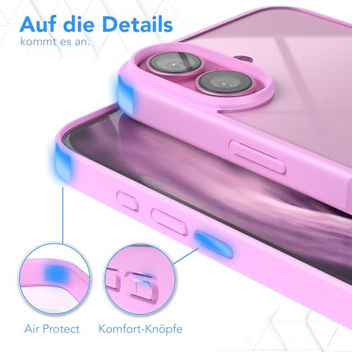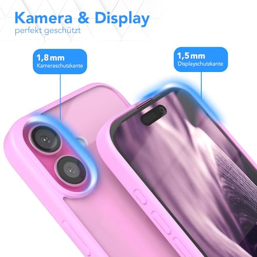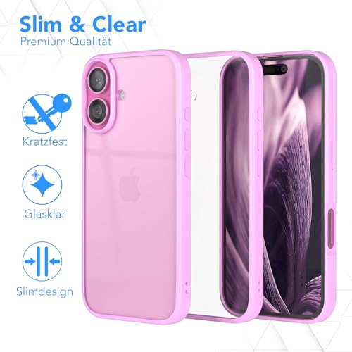 Dl3 Mobilak - جراب حماية لموبايل آيفون 16 6.1 بوصة من دلع موبايلك، جراب حماية شفاف كريستالي (لا يصفر)، حماية من السقوط من الدرجة العسكرية، جراب مضاد للصدمات بتصميم نحيف (وردي)