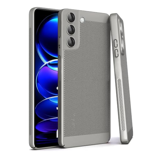 Dl3 Mobilak - جراب خلفي صلب مقاوم للصدمات من البولي كربونات لموبايل سامسونج جالاكسي S21+ بلس من دلع موبايلك، جراب تشتيت حرارة مع واقي عدسة كاميرا مدمج، نحيف وبمسامات للتهوية ومضاد لبصمات الأصابع، رمادي تيتانيوم