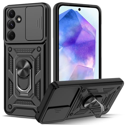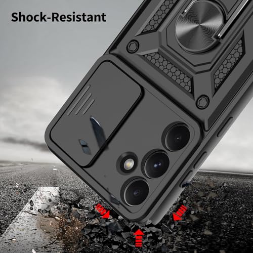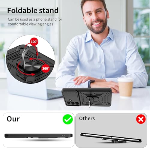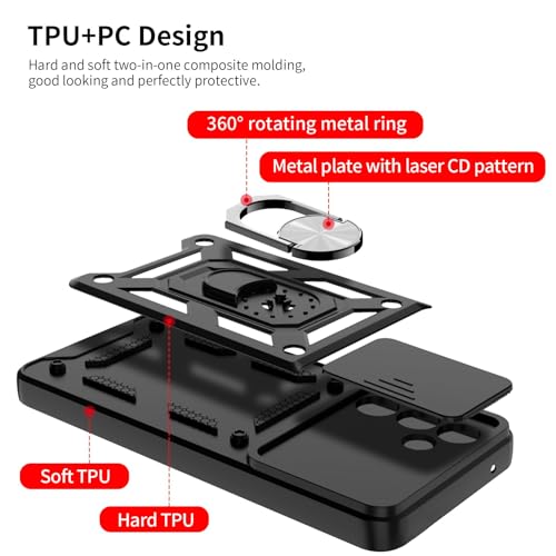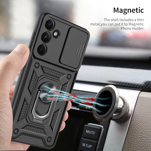 Dl3 Mobilak - دلـع موبايلك جراب لموبايل سامسونج جالاكسي S24 FE مع غطاء كاميرا منزلق، غطاء واقي مضاد للصدمات من الدرجة العسكرية مع مسند حلقي معدني قابل للدوران [يدعم حامل السيارة المغناطيسي] (اسود)