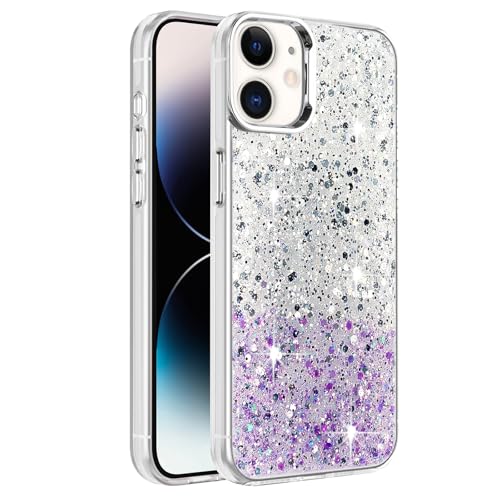 Dl3 Mobilak - جراب حماية متوافق مع موبايل ابل ايفون 11، إطار ممتص للصدمات ناعم من البولي يوريثين المقاوم للحرارة، جراب خلفي صلب شفاف مزين بجليتر للنساء والبنات، جراب حماية شفاف من دلع موبايلك (لون أبيض وأرجواني)