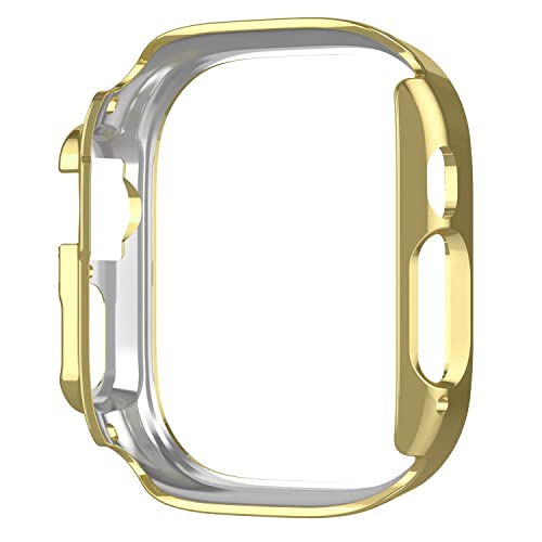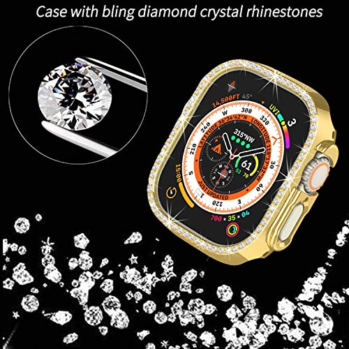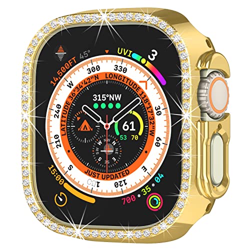 Dl3 Mobilak - جراب حماية ممتص للصدمات مصنوع من البولي كربونات ومرصع باحجار الراين الكريستالية اللامعة للنساء والبنات متوافق مع ساعة ابل ووتش الترا الذكية مقاس 49 ملم دلع موبايلك ذهبي بلاستيك