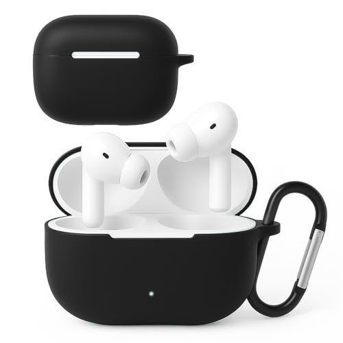Dl3 Mobilak - جراب حماية من السيليكون الناعم مضاد للصدمات لعلبة سماعات الأذن اللاسلكية مع حلقة حمل وفتحة لإظهار ضوء ليد أمامي متوافق مع علبة سماعات هونر تشويس X7 لايت من دلع موبايلك (أسود)