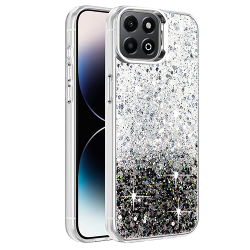 Dl3 Mobilak - جراب حماية صلب بتصميم شفاف ولامع بإطار ناعم ممتص للصدمات من البولي يوريثين المقاوم للحرارة للنساء والبنات متوافق مع موبايل هونر X6b من دلع موبايلك (لون أبيض وأسود)