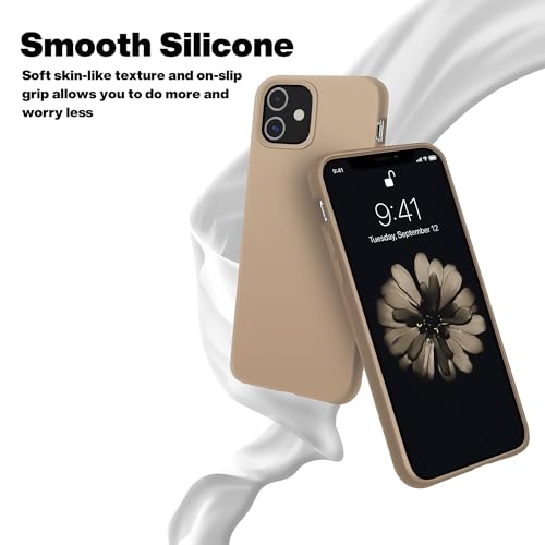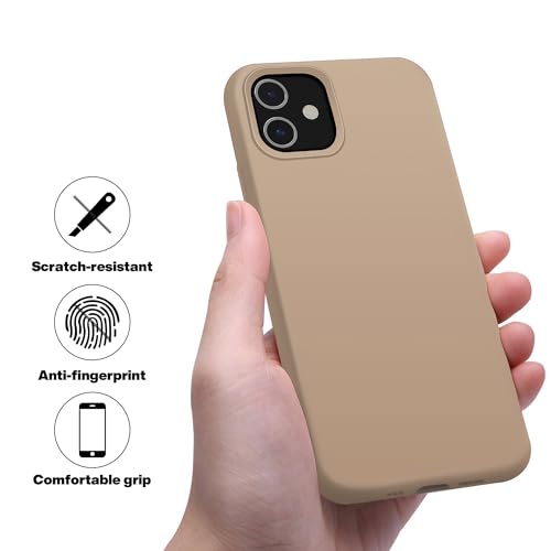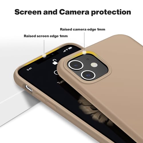 Dl3 Mobilak - جراب حماية من سيليكون سائل بتغطية كاملة وتصميم رفيع مضاد للصدمات مع بطانة ناعمة من المايكروفايبر مضادة للخدش لموبايل آيفون 11 6.1 بوصة من دلع موبايلك، بيج (Desert)