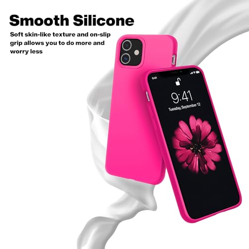 Dl3 Mobilak - دلـع موبايلك جراب حماية من السيليكون السائل متوافق مع ايفون 11 (6.1 انش)، غطاء واقي لكامل الجسم، حافظة جوال رفيعة مضادة للخدش، بطانة ناعمة من المايكروفايبر (زهري فاقع)