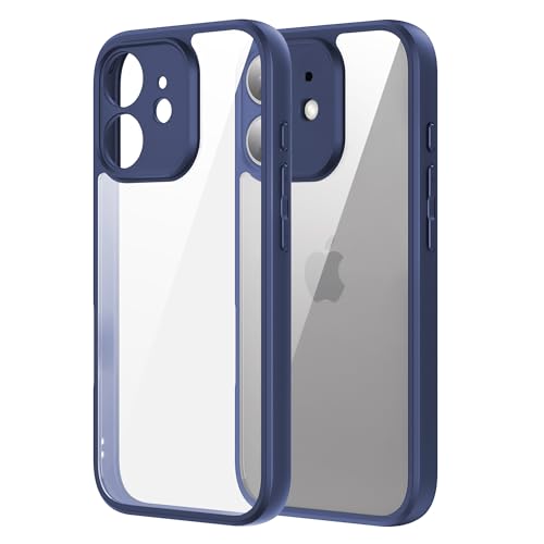 Dl3 Mobilak - جراب حماية شفاف مضاد للصدمات للموبايل متوافق مع موبايل آيفون 12، جراب ممتص للصدمات ومقاوم للاصفرار من الدرجة العسكرية، يوفر حماية كاملة مع واقي للكاميرا من دلع موبايلك (أزرق)