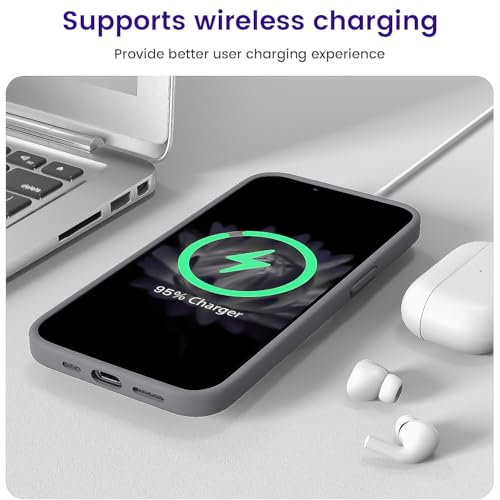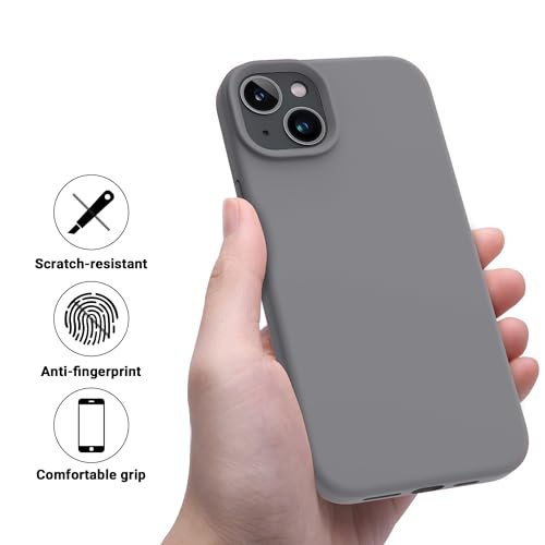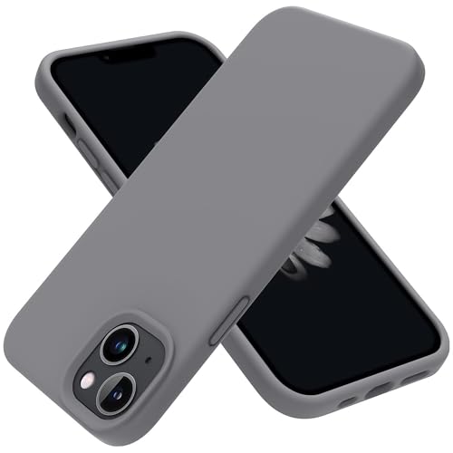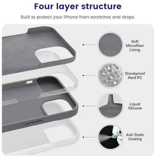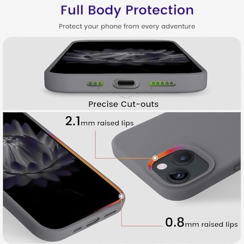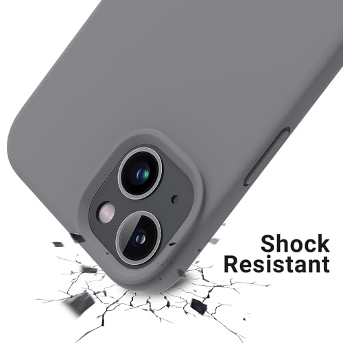 Dl3 Mobilak - دلـع موبايلك جراب حماية من السيليكون السائل متوافق مع ايفون 13 / ايفون 14 (6.1 انش)، غطاء حماية كامل للجسم مضاد للصدمات، جراب موبايل نحيف ببطانة ناعمة مضادة للخدش من المايكروفايبر (رمادي)