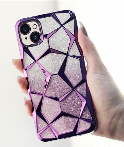 Dl3 Mobilak - جراب حماية شفاف لامع متدرج مضاد للصدمات من السيليكون والبولي يوريثين الحراري بتصميم لطيف يوفر حماية للكاميرا لموبايل آيفون 13/ آيفون 14 للنساء والبنات من دلع موبايلك، لون أرجواني
