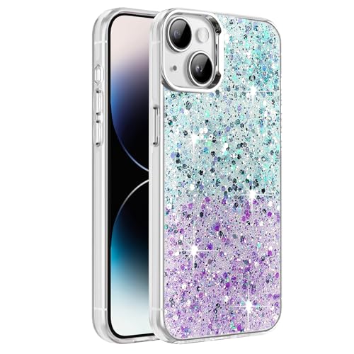 Dl3 Mobilak - جراب حماية شفاف لامع مع إطار ناعم من البولي يوريثين الحراري، وغطاء خلفي صلب للنساء والفتيات، واقي شفاف لموبايل آيفون 14/ آيفون 13 (أخضر وأرجواني) من دلع موبايلك