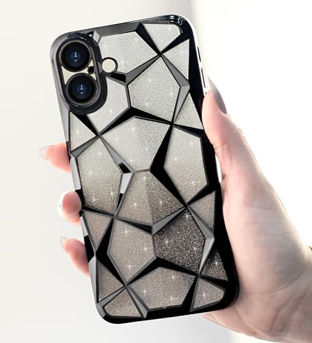 Dl3 Mobilak - جراب موبايل شفاف سيليكون وبولي يوريثين مقاوم للحرارة مطلي ومزين بجليتر متدرج اللون مع حماية لطيفة للكاميرا مقاوم للصدمات لموبايل آيفون 16 بلس بمقاس 6.7 بوصة للنساء والبنات من دلع موبايلك، أسود