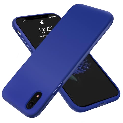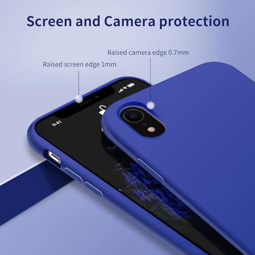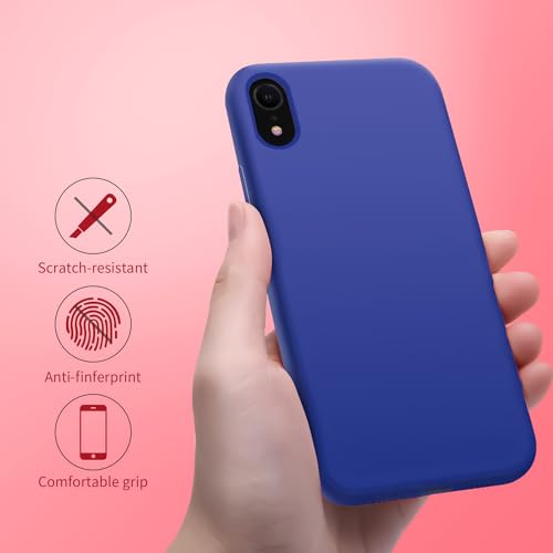 Dl3 Mobilak - دلـع موبايلك جراب حماية من السيليكون السائل متوافق مع موبايل ايفون اكس ار، غطاء واقي لكامل الجسم، مضاد للصدمات، جراب موبايل نحيف مضاد للخدش وبطانة ناعمة من المايكروفايبر (لون أزرق بيبسي)