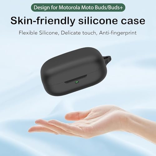Dl3 Mobilak - جراب حماية من السيليكون الناعم مقاوم للصدمات مع حلقة تثبيت وفتحة لرؤية مؤشر الليد الأمامي، متوافق مع سماعات موتورولا موتو بادز من دلع موبايلك (لون أسود)