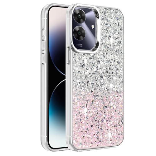 Dl3 Mobilak - جراب حماية شفاف جليتر لامع بإطار من البولي يوريثين المقاوم للحرارة الناعم، جراب خلفي صلب للنساء والبنات متوافق مع موبايل أوبو ريلمي نوت 60 من دلع موبايلك - شفاف، لون أبيض وردي