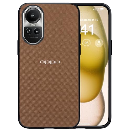 Dl3 Mobilak - جراب حماية مزدوج الطبقات متين ومضاد للصدمات بملمس مزخرف مضاد للانزلاق متوافق مع موبايل أوبو رينو 10 شبكة الجيل الخامس 5G/أوبو رينو 10 برو شبكة الجيل الخامس 5G من دلع موبايلك، بني