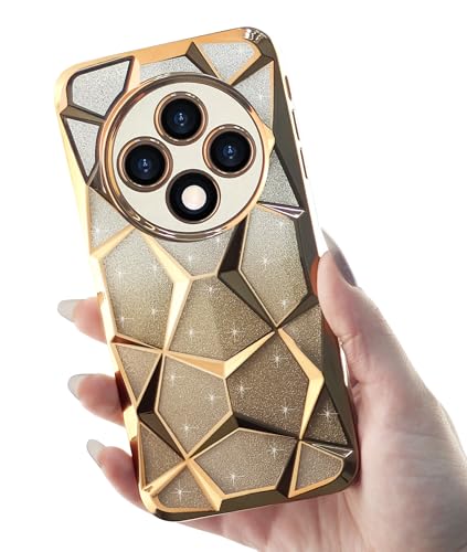 Dl3 Mobilak - جراب حماية متوافق مع أوبو رينو 12F بتصميم شفاف لامع متدرج ناعم من السيليكون والبولي يوريثين المقاوم للحرارة لطيف مع حماية للكاميرا ومضاد للصدمات للنساء والبنات من دلع موبايلك - لون ذهبي
