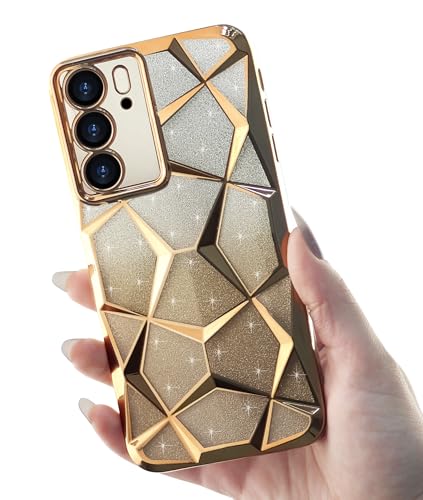 Dl3 Mobilak - جراب موبايل شفاف جليتر متدرج من السيليكون والبولي يوريثين الحراري الناعم لحماية الكاميرا ومضاد للصدمات للنساء والبنات، متوافق مع ريلمي C75 وريلمي 14x من دلع موبايلك - لون ذهبي