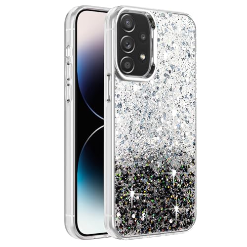 Dl3 Mobilak - دلـع موبايلك جراب متوافق مع سامسونج جالاكسي A13، شفاف لامع ولامع، اطار ممتص للصدمات ناعم من البولي يوريثين الحراري، غطاء خلفي صلب للنساء والفتيات، جراب حماية شفاف (ابيض واسود)