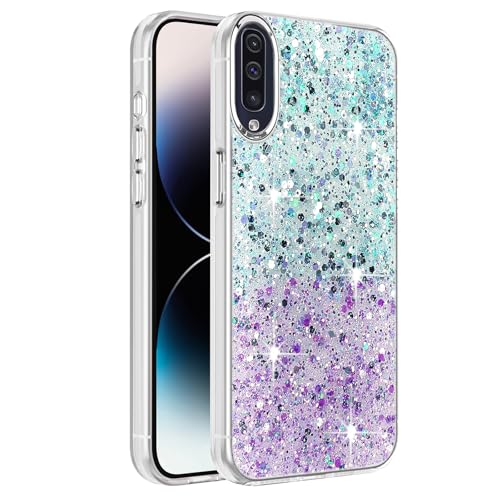 Dl3 Mobilak - جراب حماية شفاف ولامع من البولي يوريثين المقاوم للحرارة متوافق مع سامسونج جالاكسي A50/ A30S/A50S مع إطار ممتص للصدمات بغطاء خلفي صلب للنساء والبنات من دلع موبايلك، لون أخضر وأرجواني