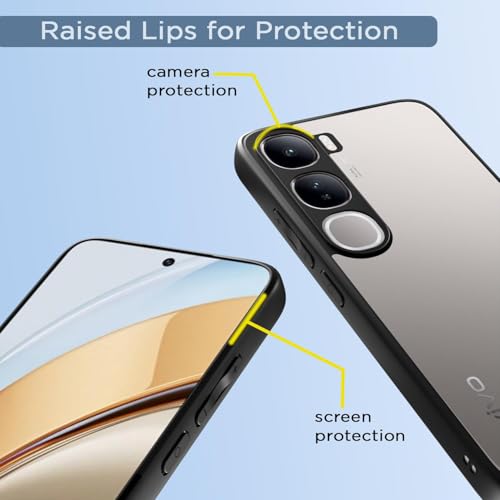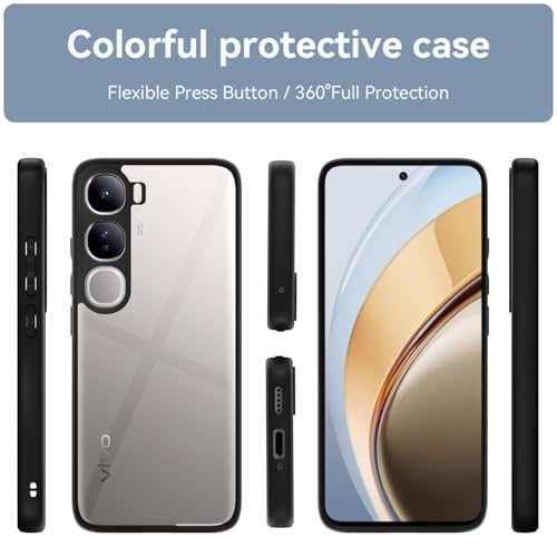 Dl3 Mobilak - جراب موبايل شفاف رفيع كامل مضاد للصدمات من الدرجة العسكرية ومضاد للاصفرار، مع واقي عدسة كاميرا متوافق مع فيفو V40 لايت شبكة الجيل الرابع 4G من دلـع موبايلك، أسود