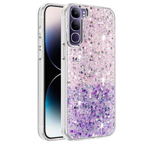 Dl3 Mobilak - جراب موبايل ممتص للصدمات ناعم من البولي يوريثين المقاوم للحرارة بغطاء خلفي صلب للنساء والبنات شفاف لامع ومبهرج متوافق مع فيفو V40 لايت، من دلع موبايلك (أرجواني وردي)