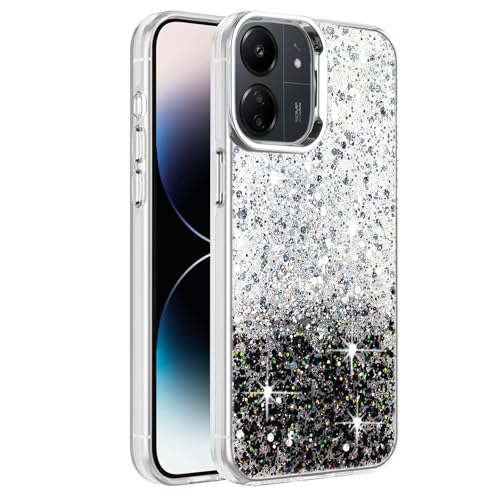 Dl3 Mobilak - دلـع موبايلك جراب حماية شفاف متوافق مع موبايل شاومي ريدمي 13C 4G / بوكو C65، شفاف لامع ولامع، اطار من البولي يوريثين الحراري الناعم، غطاء خلفي صلب للنساء والفتيات، جراب حماية شفاف (ابيض واسود)