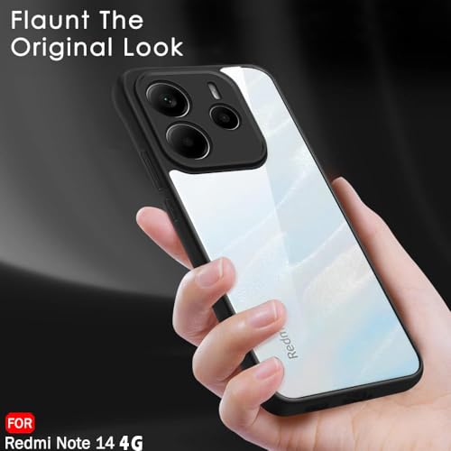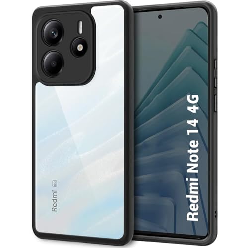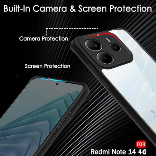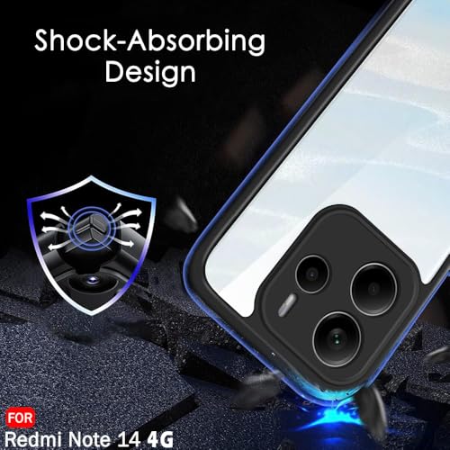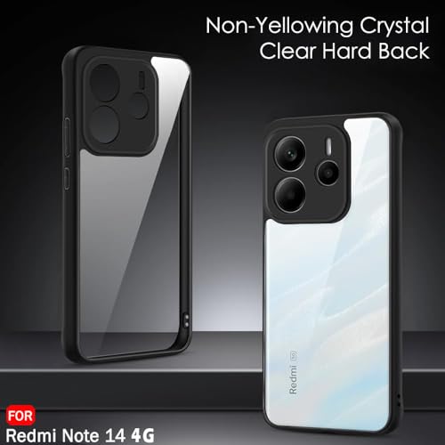 Dl3 Mobilak - جراب حماية خلفي شفاف مضاد للصدمات من الدرجة العسكرية بتصميم مضاد للاصفرار لموبايل شاومي ريدمي نوت 14 شبكة الجيل الرابع 4G (لا يناسب شبكة الجيل الخامس) مع واقي للكاميرا بلون أسود من دلـع موبايلك