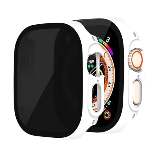 Dl3 Mobilak - دلـع موبايلك غطاء حماية لشاشة الخصوصية لساعة ابل الترا 2 - مضاد للتجسس ومضاد للصدمات جراب صلب مدمج من البولي كربونات الزجاج المقوى عالي الدقة ابيض