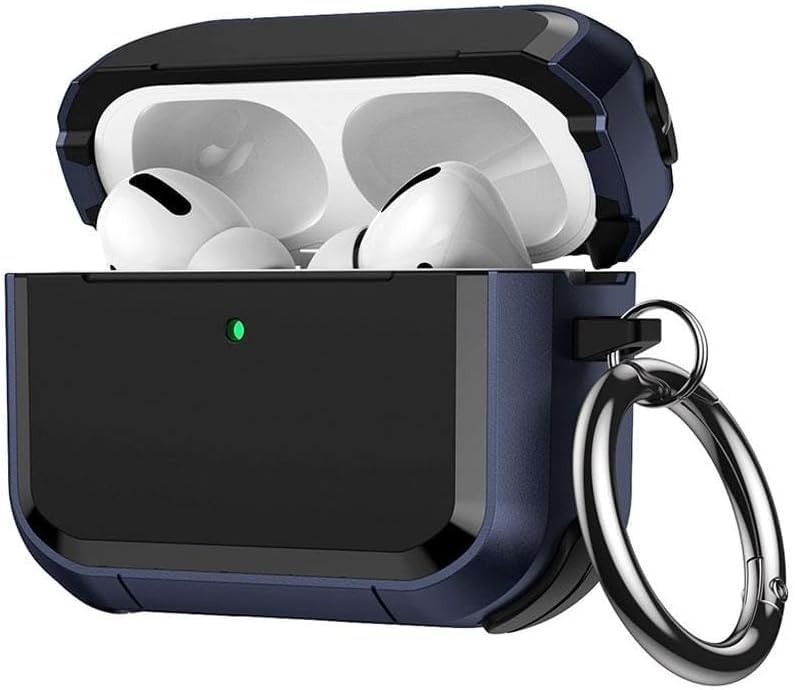 Dl3 Mobilak - جراب حماية لسماعات آبل ايربودز برو 1/2 مصنوع من البولي يوريثين الحراري، يوفر حماية كاملة مضادة للصدمات، يدعم الشحن اللاسلكي ومزود بحلقة تثبيت من دلع موبايلك (أزرق وأسود)