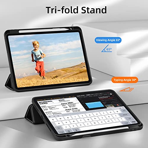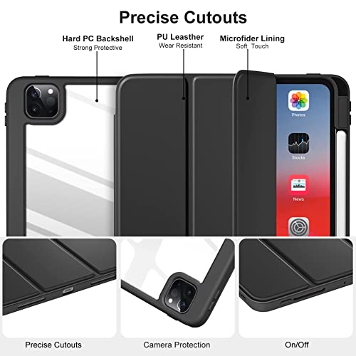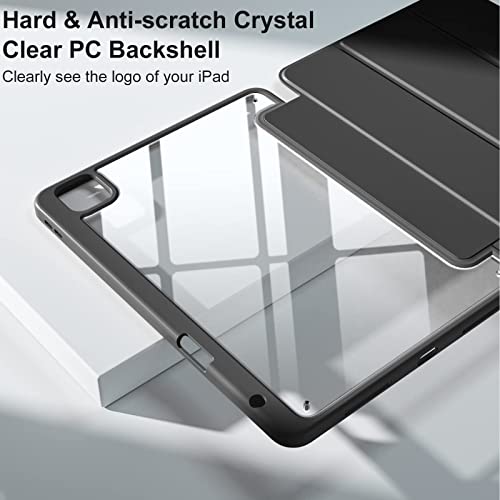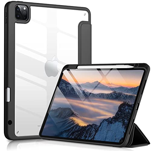 Dl3 Mobilak - جراب حماية خلفي شفاف مضاد للصدمات مع حامل قلم مدمج لجهاز ايباد برو 12.9 جيل سادس وخامس ورابع وثالث 2022-2021-2020-2018 من دلع موبايلك اسود بولي يوريثين اللدن بالحرارة 12.9 الجيل السادس