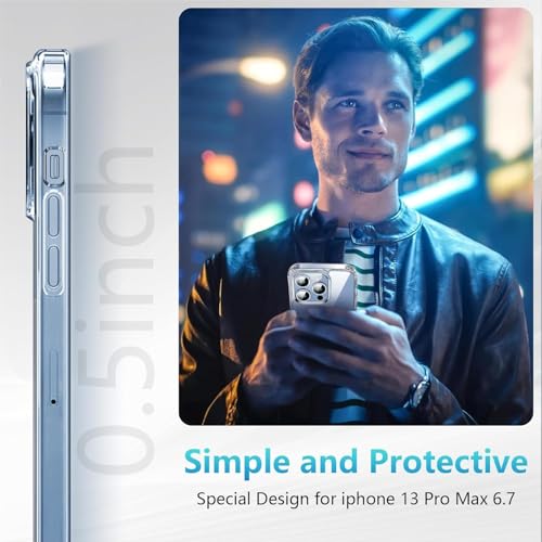 - 【حماية ممتازة】 احمِ موبايل ايفون 13 برو ماكس الخاص بك مع هذا الجراب الشفاف عالي الجودة المصنوع من الأكريليك والبولي يوريثين الحراري، مما يوفر حماية موثوقة ضد السقوط والصدمات والخدوش اليومية.