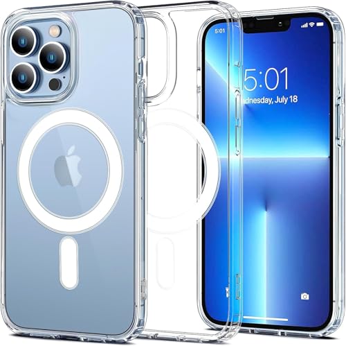 Dl3 Mobilak - دلـع موبايلك جراب شفاف لموبايل ايفون 13 برو ماكس [متوافق مع ماج سيف] [مغناطيس قوي] [لا يصفر] غطاء جوال مغناطيسي رفيع ممتص للصدمات خفيف الوزن ومتين