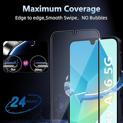 - 📲 التوافق: مصمم لموبايل سامسونج جالاكسي A16 لتوفير حماية كبيرة. مصمم بحواف منحنية 2.5 دي مدروسة، متوافق مع معظم جرابات الموبايل. يرجى التحقق من موديل جهازك قبل الشراء.