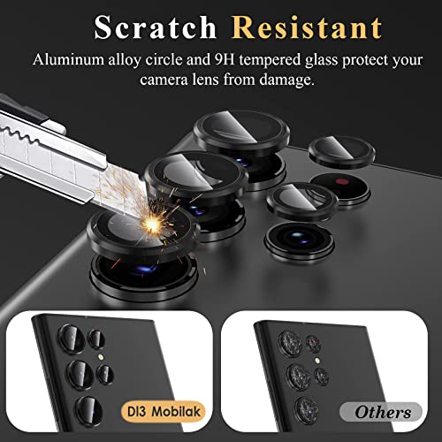 Dl3 Mobilak - واقي عدسة كاميرا لموبايل سامسونج جالاكسي S23 الترا مناسب للجراب من الزجاج المقوى بدرجة صلابة 9 مضاد للخدش بحماية الدرجة العسكرية التيتانيوم المستخدم بالفضاء دلع موبايلك مع اداة ازالة (اسود)