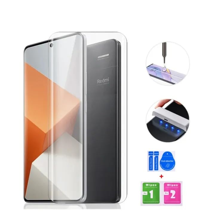 Dl3 Mobilak - دلـع موبايلك شاشة حماية زجاج المقسى لهاتف شاومي ريدمي نوت 13 برو بلس 5G من ا والاشعة فوق البنفسجية مع لاصق كامل لفتح القفل ببصمة الاصبع شفاف