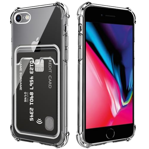 Dl3 Mobilak - جراب Dl3 Mobilak لهاتف iPhone 6 / iPhone 6s، شفاف، مزود بحامل بطاقات، ومحفظة خلفية، مصنوع من مادة TPU الناعمة الشفافة، ومقاوم للصدمات، ومقاوم للسقوط، مع حماية لعدسة الكاميرا - شفاف
