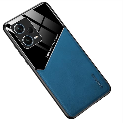 Dl3 Mobilak - جراب حماية فاخر لموبايل شاومي ريدمي نوت 12 جيل خامس 5G من دلع موبايلك، إطار رفيع وناعم للغاية من البولي يوريثين المقاوم للحرارة، جلد خلفي مختلط مزدوج + زجاج بلكسي مع مغناطيس سيارة مدمج، أزرق