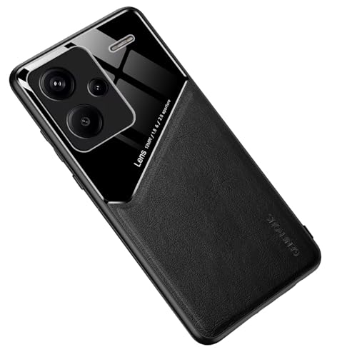 Dl3 Mobilak - جراب حماية خلفي إطار من البولي يوريثين المقاوم للحرارة المرن وفائق النحافة جلد مختلط ومزدوج في الخلف + زجاج بلكسي مع مغناطيس سيارة مدمج دلع موبايلك لشاومي ريدمي نوت 13 برو + 5G -بلس 5G أسود