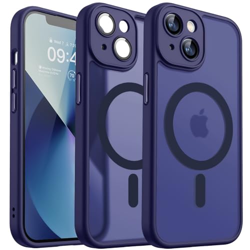 Dl3 Mobilak - جراب مغناطيسي مطور مضاد للصدمات مع حماية كاملة للكاميرا، متوافق مع شحن ماج سيف بتصميم شفاف ومطفي لموبايل آيفون 15 6.1 بوصة من دلع موبايلك، أزرق
